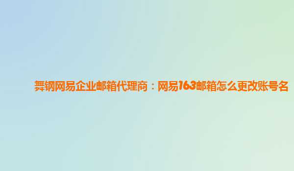 舞钢网易企业邮箱代理商:网易163邮箱怎么更改账号名