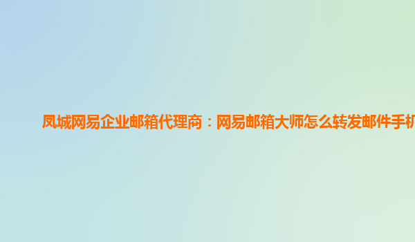 凤城网易企业邮箱代理商:网易邮箱大师怎么转发邮件手机版