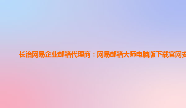长治网易企业邮箱代理商:网易邮箱大师电脑版下载官网安装