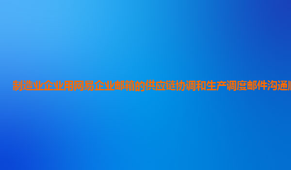制造业企业用网易企业邮箱的供应链协调和生产调度邮件沟通顺畅吗?