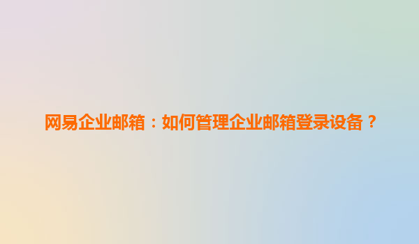 在现代企业中,电子邮件是沟通和协作的重要工具。网易企业邮箱作为一款功能强大的企业级邮箱解决方案,提供了丰富的管理功能,其中之一就是对登录设备的管理。合理管理企业邮箱的登录设备,可以有效保护企业信息安全,提升工作效率。本文将详细介绍如何管理网易企业邮箱的登录设备,并结合网易企业邮箱及其代理商的优势,帮助企业更好地利用这一工具。