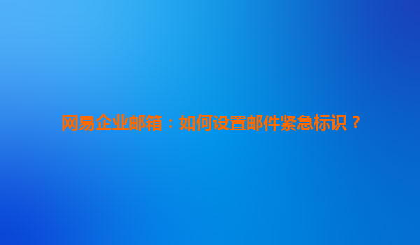 在现代企业中,电子邮件已经成为沟通的重要工具。网易企业邮箱凭借其稳定性和丰富的功能,成为众多企业的首选。本文将介绍如何设置邮件紧急标识,并探讨网易企业邮箱的优势及其便捷之处。