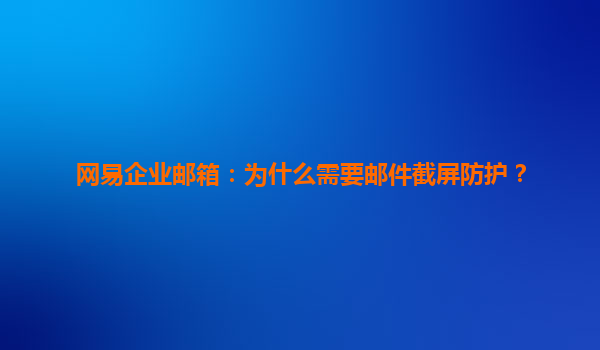 - 邮件截屏防护功能:网易企业邮箱提供邮件截屏防护功能,用户在使用邮箱时,可以设置截屏保护,防止重要邮件内容被随意截取和传播。