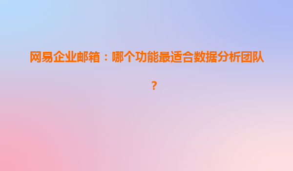 网易企业邮箱:数据分析团队的最佳选择