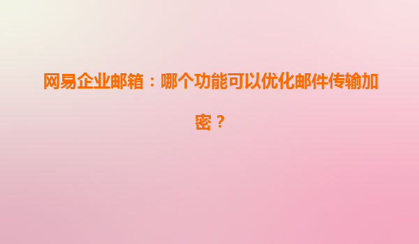 网易企业邮箱:优化邮件传输加密的功能