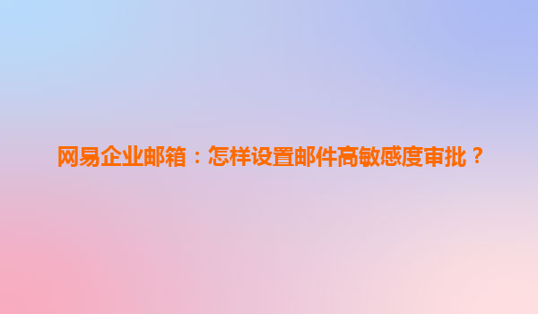 如何设置网易企业邮箱的邮件高敏感度审批