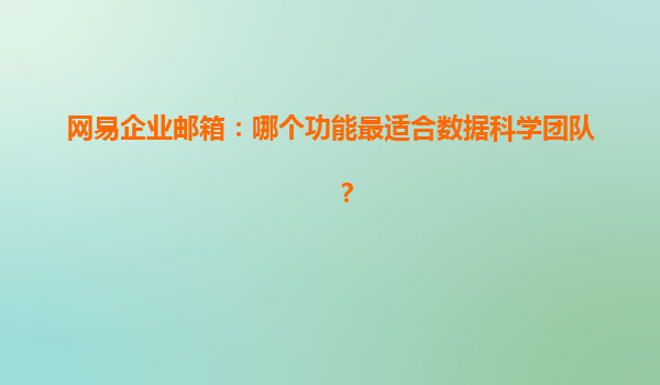 网易企业邮箱对数据科学团队的最佳功能探讨