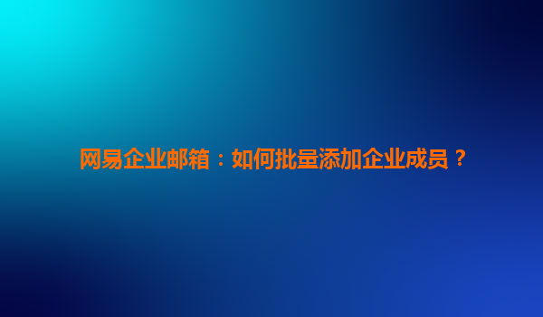 网易企业邮箱作为一个专业的企业级邮件服务平台,凭借其高效、安全、稳定的特点,帮助企业用户轻松解决了日常的邮件沟通问题。而批量添加成员功能的出现,则进一步简化了企业邮箱的管理流程,让管理员能够快速地将新成员添加进系统,提升工作效率。