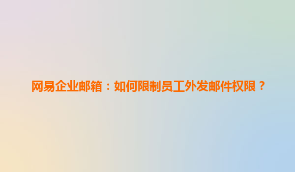 如何限制员工外发邮件权限 —— 网易企业邮箱的优势与设置方法