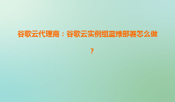 谷歌云代理商:谷歌云实例组蓝绿部署怎么做?