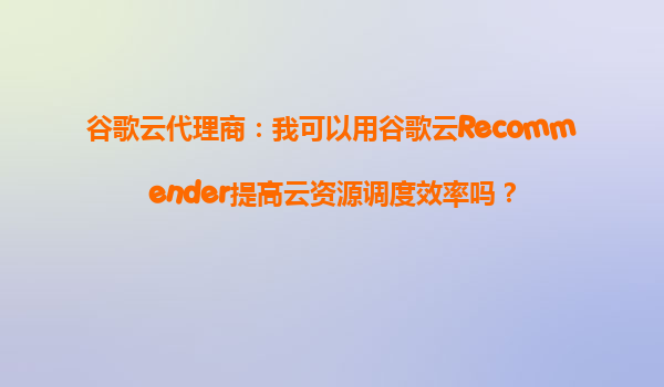 谷歌云代理商:我可以用谷歌云Recommender提高云资源调度效率吗?