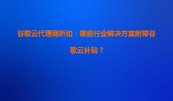 谷歌云代理商折扣:哪些行业解决方案附带谷歌云补贴?