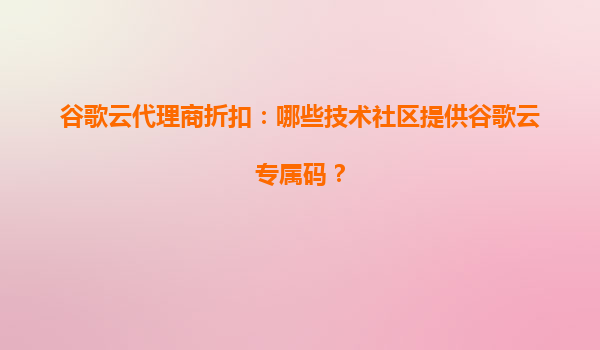 谷歌云代理商折扣:哪些技术社区提供谷歌云专属码?
