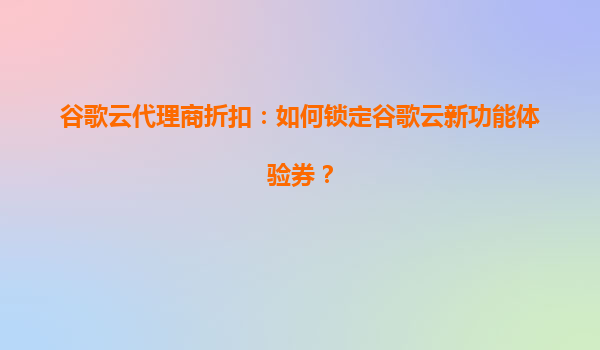 谷歌云代理商折扣:如何锁定谷歌云新功能体验券?