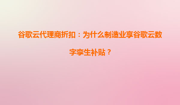 谷歌云通过代理商渠道为制造业提供专项补贴,主要原因包括: