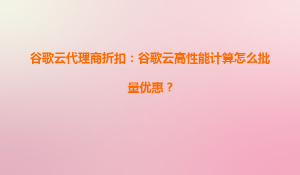 谷歌云代理商折扣:谷歌云高性能计算如何实现批量优惠?
