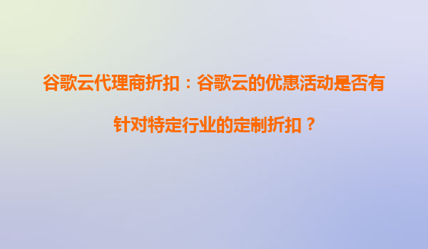 谷歌云代理商折扣:谷歌云的优惠活动是否有针对特定行业的定制折扣?
