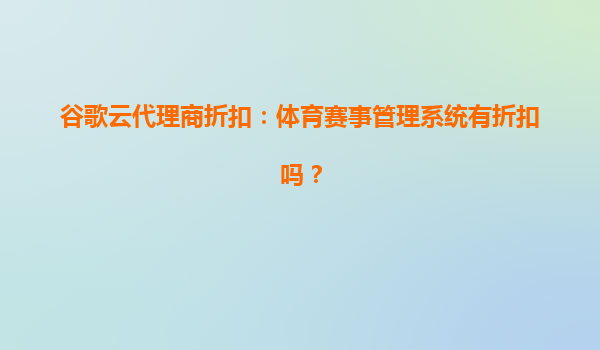 谷歌云代理商折扣:体育赛事管理系统如何受益?