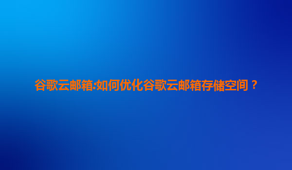 谷歌云邮箱存储空间优化指南:高效管理与实用技巧