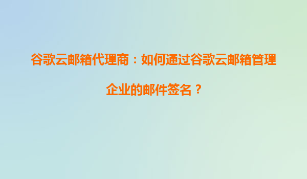 谷歌云邮箱代理商:如何通过谷歌云邮箱管理企业的邮件签名?