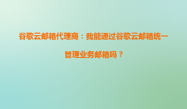 谷歌云邮箱代理商:我能通过谷歌云邮箱统一管理业务邮箱吗?