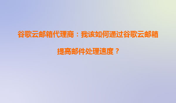 谷歌云邮箱代理商:如何通过谷歌云邮箱提高邮件处理速度