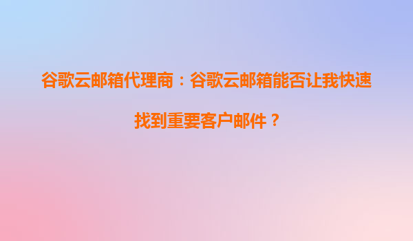 谷歌邮箱代理商:谷歌云邮箱能否让我快速找到重要客户邮件?