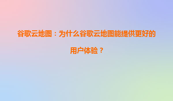 谷歌云地图:为什么能提供更好的用户体验?