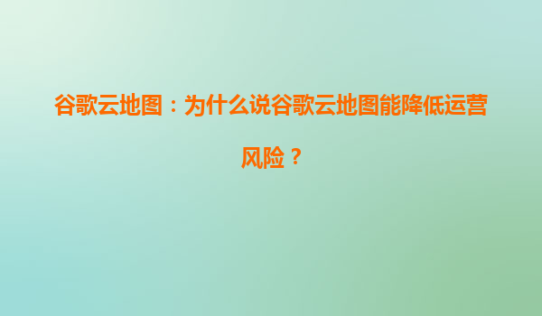 谷歌云地图:为什么说谷歌云地图能降低运营风险?