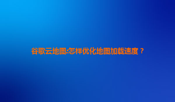 谷歌云地图:怎样优化地图加载速度?