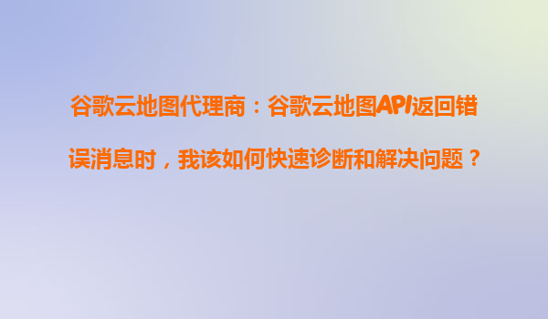 谷歌云地图代理商指南:快速诊断API错误及解决方案