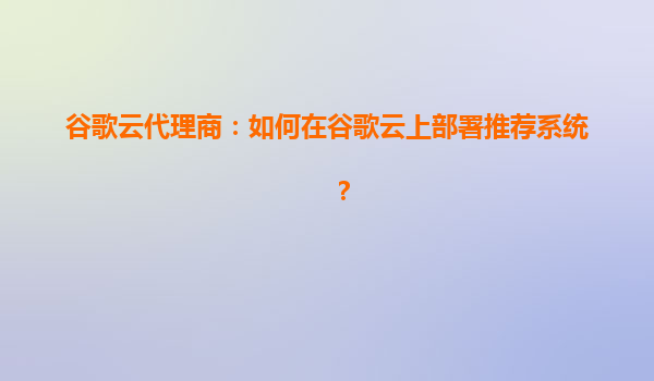 谷歌云代理商:如何在谷歌云上部署推荐系统?