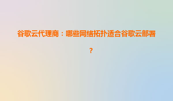 谷歌云代理商:哪些网络拓扑适合谷歌云部署?