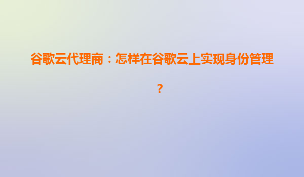 谷歌云代理商:怎样在谷歌云上实现身份管理?