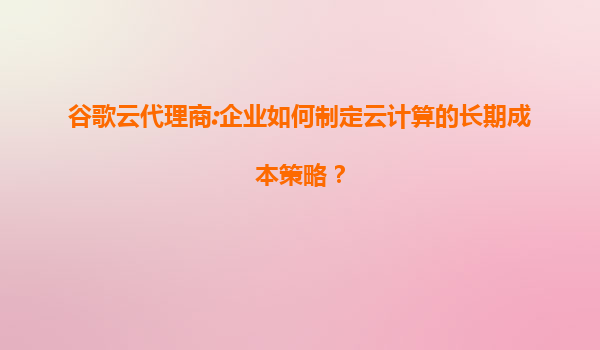 谷歌云代理商:企业如何制定云计算的长期成本策略