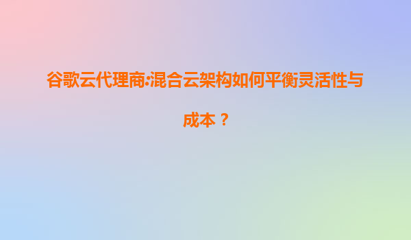 谷歌云代理商:混合云架构如何平衡灵活性与成本?