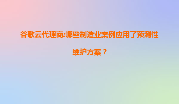 谷歌云代理商:制造业预测性维护方案应用案例解析