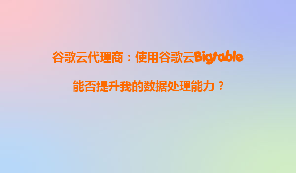 谷歌云代理商:使用谷歌云Bigtable能否提升我的数据处理能力?