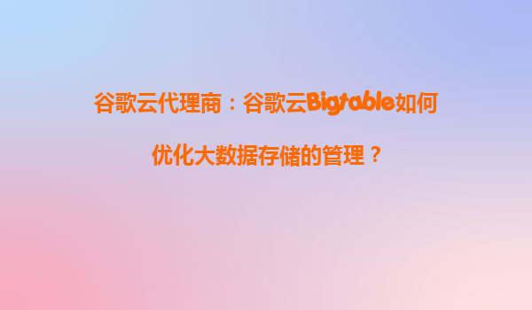 谷歌云Bigtable优化大数据存储管理的核心优势