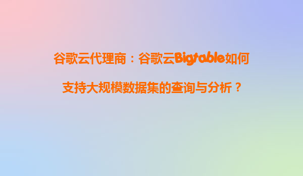 谷歌云代理商:谷歌云Bigtable如何支持大规模数据集的查询与分析?