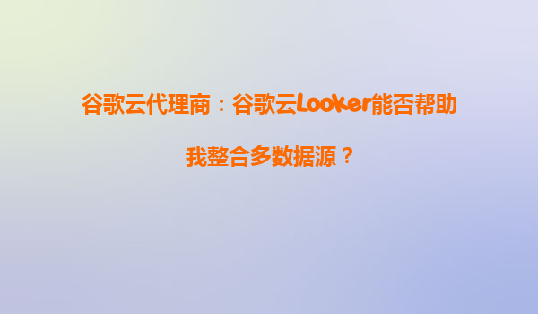谷歌云代理商:谷歌云Looker能否帮助我整合多数据源?