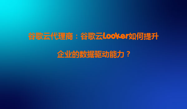 谷歌云代理商:谷歌云Looker如何提升企业的数据驱动能力?