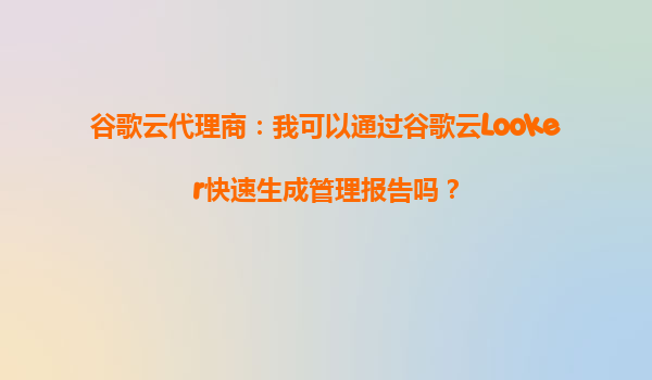 谷歌云代理商:通过谷歌云Looker快速生成管理报告的优势解析