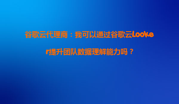 谷歌云代理商:我可以通过谷歌云Looker提升团队数据理解能力吗?