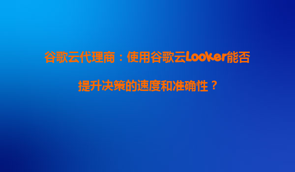谷歌云代理商:使用谷歌云Looker能否提升决策的速度和准确性?