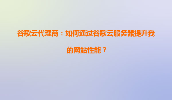 谷歌云代理商:如何通过谷歌云服务器提升我的网站性能?