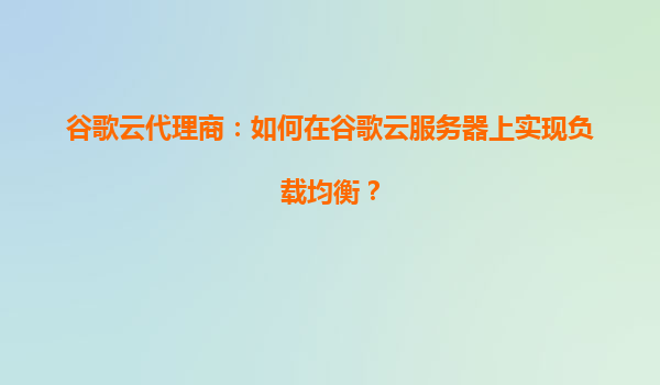 谷歌云代理商指南:如何在谷歌云服务器上实现负载均衡