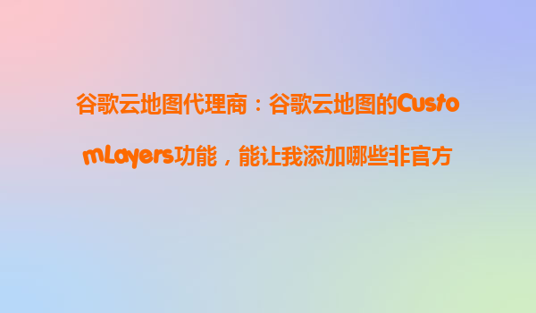 2025-10-31谷歌云地图代理商优势解析:CustomLayers如何赋能非官方数据整合 一、CustomLayers功能的核心能力 谷歌云地图的CustomLayers是面向企业级用户推出的深度定制功能,允许开发者通过代理商...