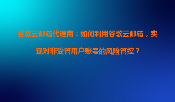 2025-10-31谷歌云邮箱代理商指南:高效管控非受管用户账号风险 1.谷歌云邮箱的核心优势 谷歌云邮箱(GoogleWorkspace)作为企业级邮件解决方案,提供99.9%的服务可用性保障和端到端加密传输,其分布式架构能有效抵...