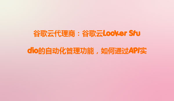谷歌云代理商:LookerStudio的自动化管理功能如何通过API实现? 引言:自动化与API的价值 在现代企业数据管理中,自动化和API集成已成为提升效率、减少人为错...
